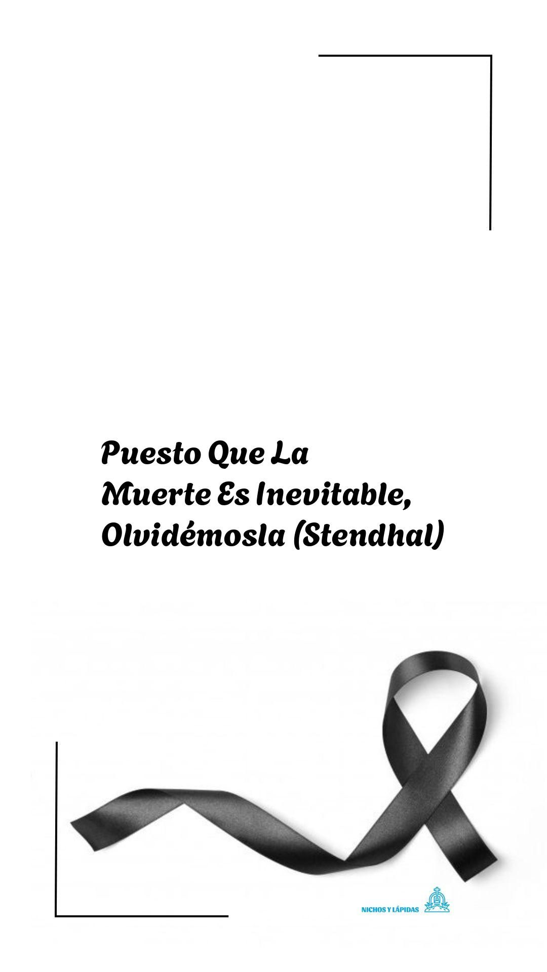 La frase «Puesto que la muerte es inevitable, olvidémosla» del escritor francés Stendhal es una invitación a no vivir obsesionados con el final de la vida y a disfrutar del tiempo que tenemos. Se suele usar en contextos funerarios para recordar que la muerte es parte de la existencia y que lo importante es cómo vivimos.